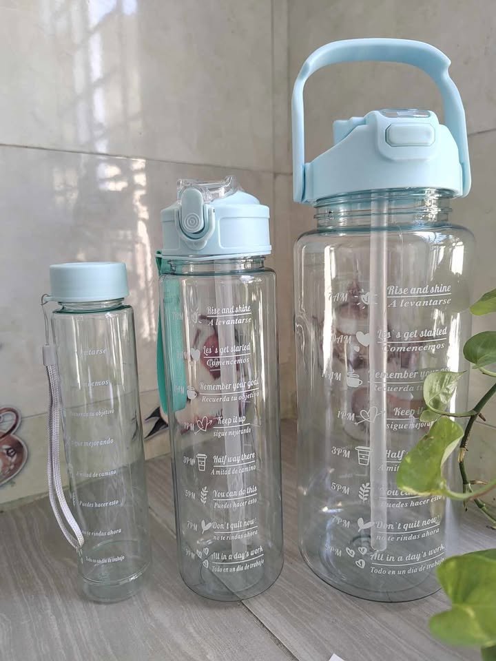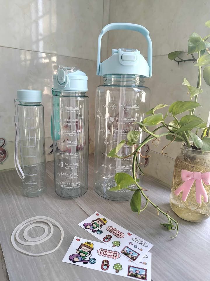 3 in 1 মোটিভেশনাল ওয়াটার বোতল সেট (২০০০ml + ৯০০ml + ৩০০ml). জিম, অফিস বা ভ্রমণের সময় পানির চাহিদা পূরণ করবে সহজেই।