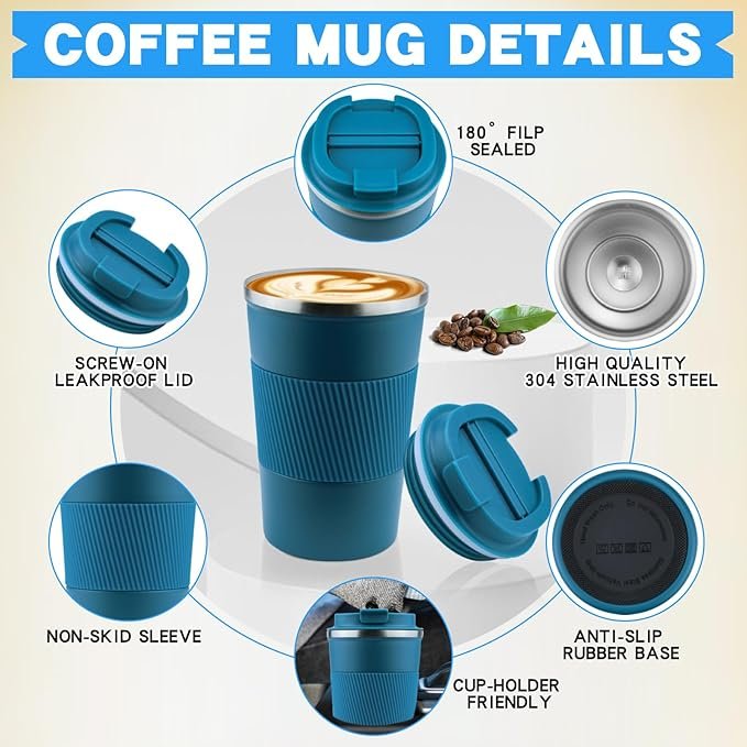 - ডাবল ওয়াল স্টেইনলেস স্টিল কাপ: উচ্চ মানের স্টেইনলেস স্টিল দিয়ে তৈরি, টেকসই এবং গন্ধমুক্ত রাখে।